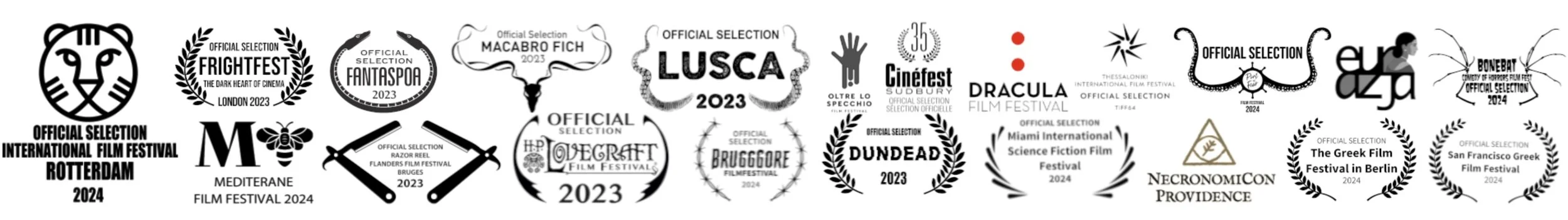 Screened at Thessaloniki IFF, Imagine, Fantaspoa, H.P. Lovecraft FF, Cyprus IFF, San Francisco Greek FF, Chicago Greek FF, Bridges IFF, Australia Greek FF, New York Greek FF